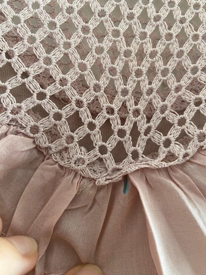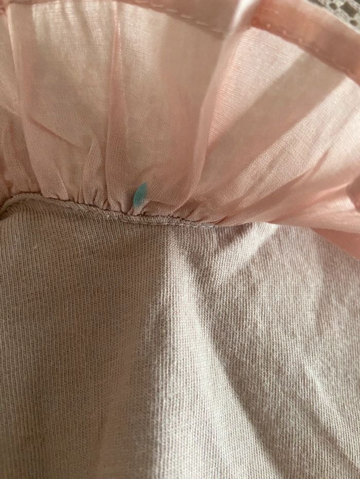 T-shirt avec dentelle au col et froufrous taille M une petite tache de feutre non voyante et je n’ai pas essayé de détacher ça part sûrement