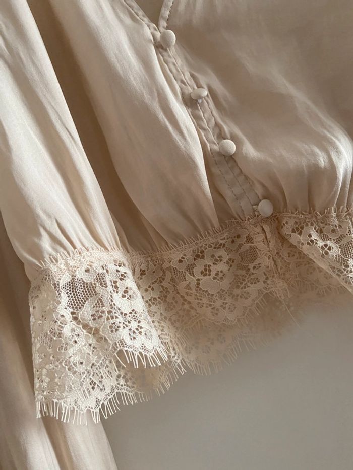 Blouse courte légère avec dentelle beige stradivarius - photo numéro 1