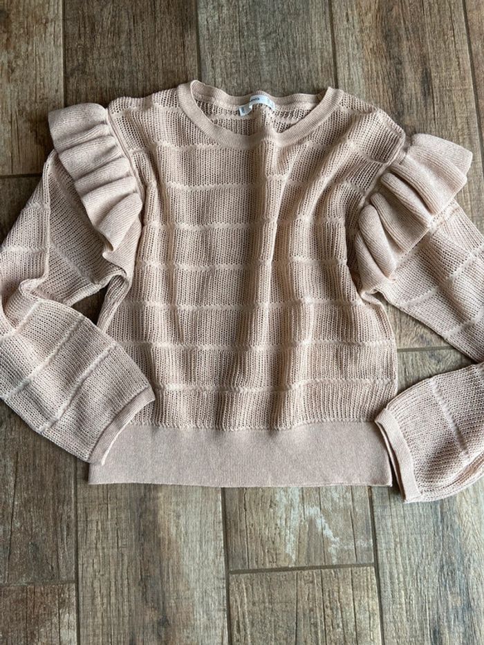 Superbe pull fin et ajouré mango taille s Jolie couleur vieux rose beige