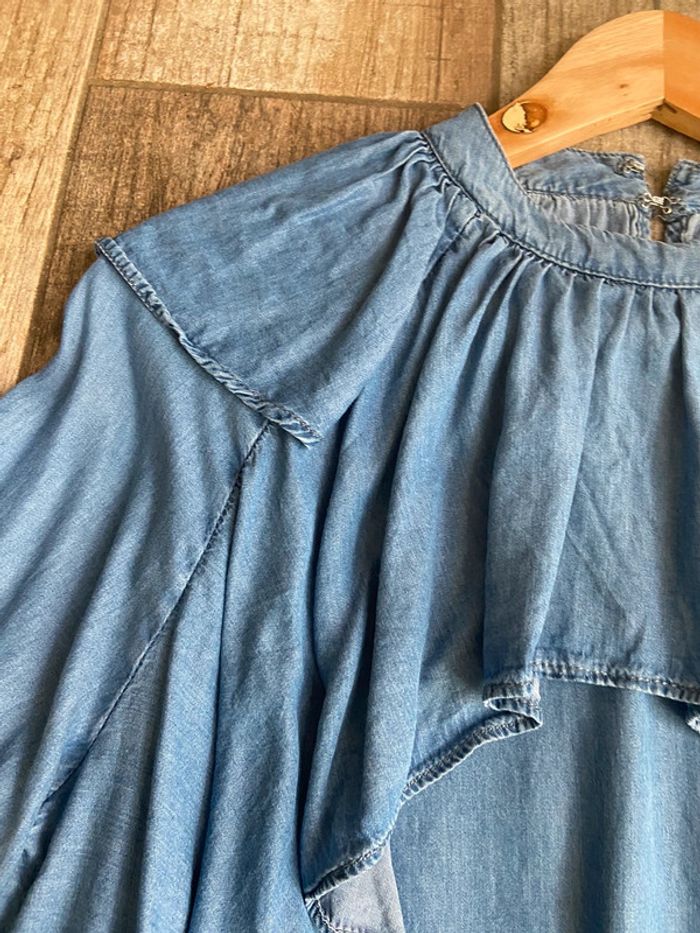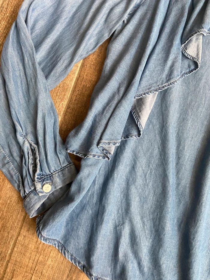 Blouse manches longues en jean à volants mango - photo numéro 3