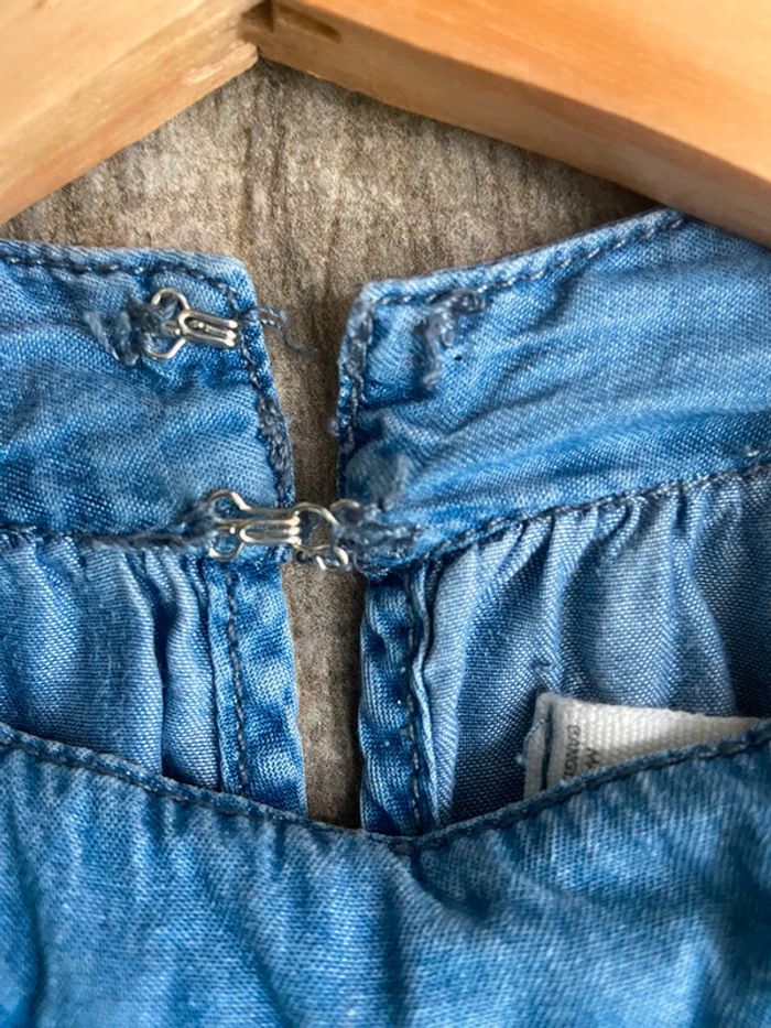Blouse en jean légère taille XS il manque un petit crochet si vous voulez en recoudre un sinon il y’en a un deuxième pour fermer