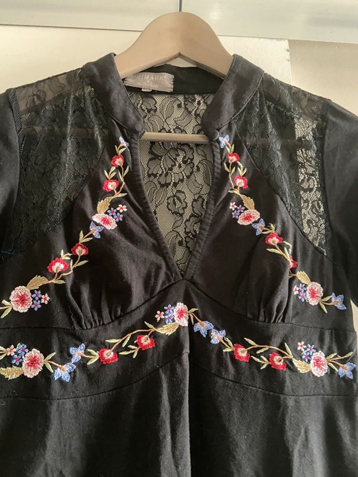 Robe dentelle et broderie fleurs noir - photo numéro 2