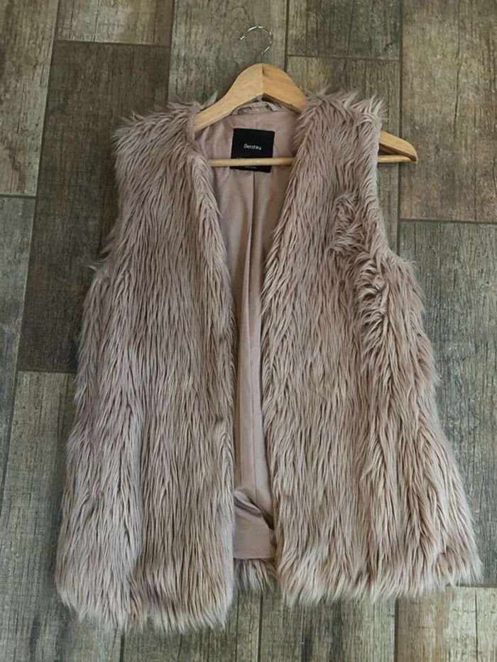 Veste sans manches poilue bershka taille s la couleur ne sort pas bien c’est un beau vieux rose très bon état très peu portée toute douce