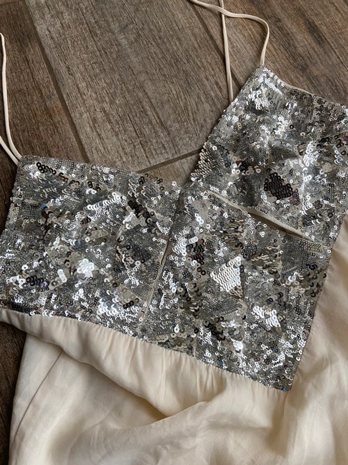 Debardeur a paillettes sequins Ibiza beige et argenté - photo numéro 3