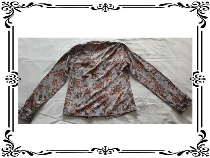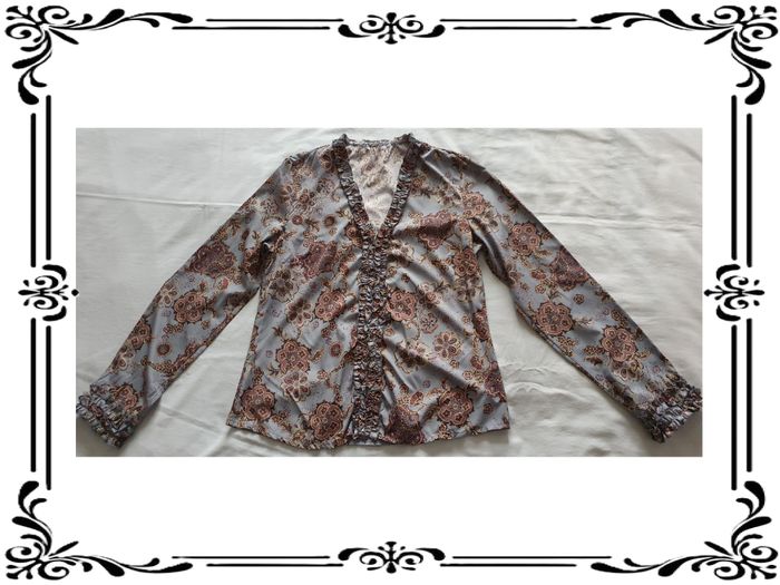Chemisier taille 40. Chemisier manches longues fleuri bleu et marron. Fermeture par crochets. Tissu non extensible. Largeur d'épaule à épaule: 38 cm Largeur sous les bras : 49 cm Largeur à la taille: 45,5 cm Largeur en bas: 52 cm Hauteur du décolleté à partir des épaules: 19 cm Longueur totale: 60 cm Longueur des manches: 61,5 cm Largeur haut des manches: 21 cm Largeur bas des manches: 10 cm En très bon état. Sans marque. 3€. #vero38110vetementsfemme40