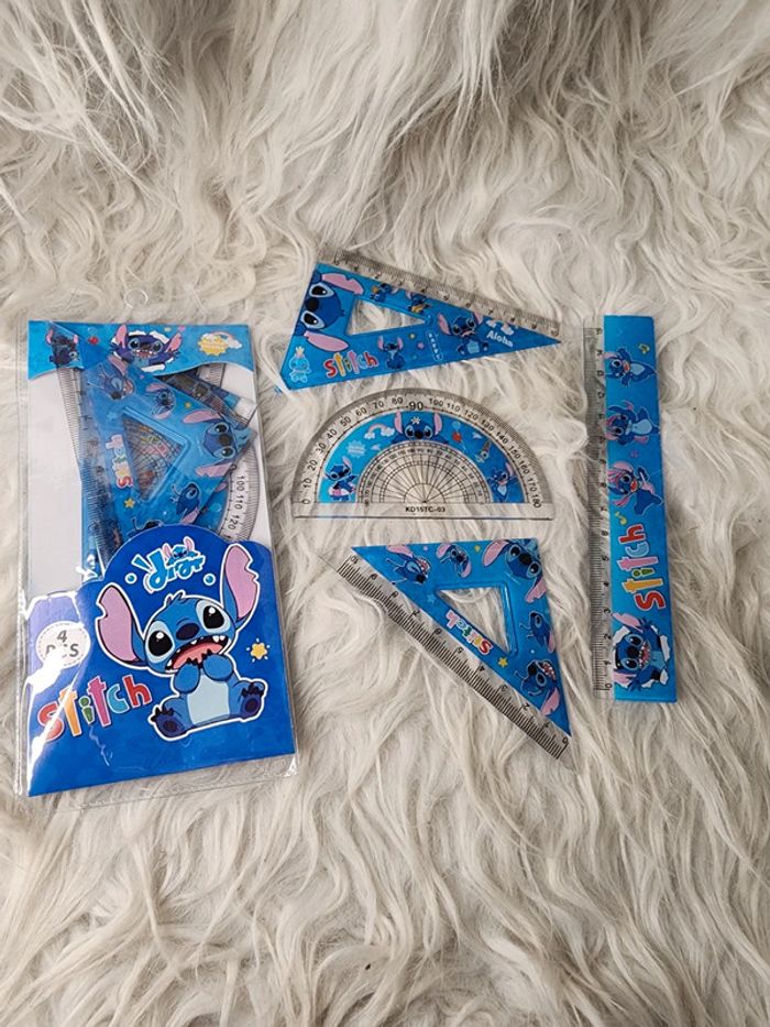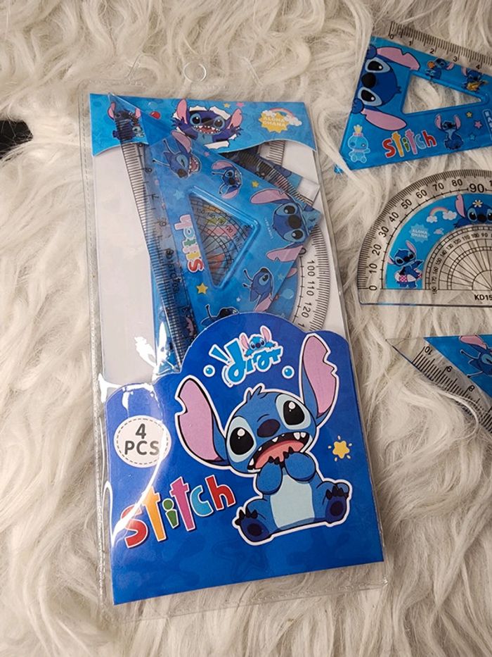 🌸 Bonjour, Je vends ce kit de 4 pièces stitch composé d'une regle, un rapporteur et 2 équerre Neuf jamais servi 3 lots de disponible 📦 Envois seulement en mondial relai, relai colis ou la poste