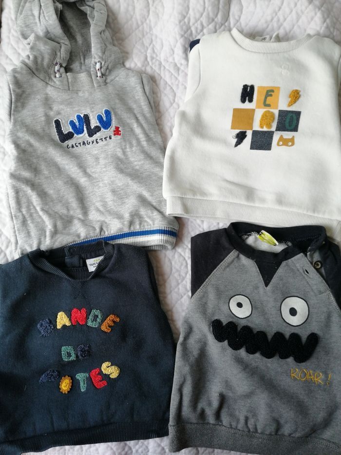 8 ensembles 6 pentalons 3 salopette 8 pulls 8 pulls fin Il y as d'autre vêtements et ensembles. Photo par message merci