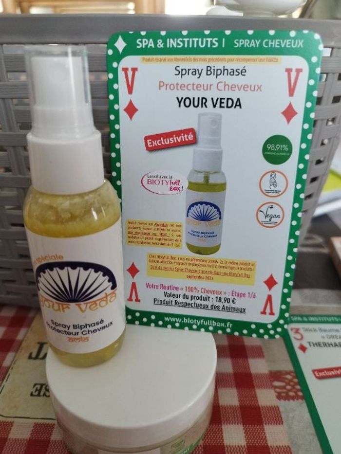 Spray biphasé protecteur cheveux Marque your Veda Contenance 50 ml Ne pas hésiter à demander j'ai parfois plusieurs exemplaires sur certains article. Notez que je vend sur plusieurs plateforme, j'essaie de mettre à jour le plus vite possible mais il peut arriver que je doivent annuler une vente si j'ai vendu sur ailleurs, je donne priorité à l'ordre d'achat (première qui commande qui sera honorée) #Biotyfullbox #Biotyffull box #goodiebox #My little Box #Glossybox #blissim #Prescription Lab #Bio #solide