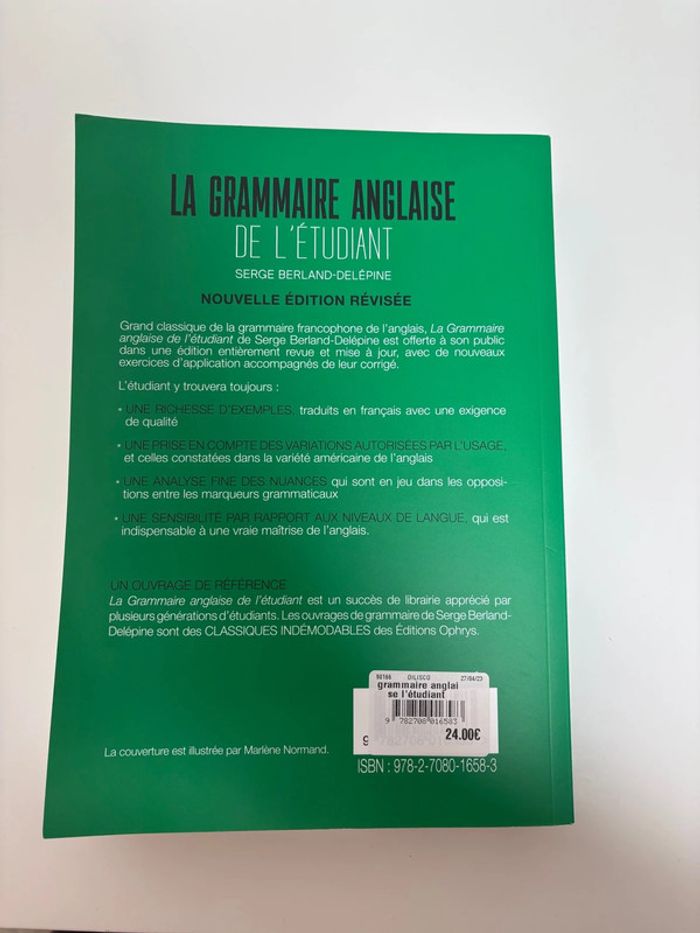 La grammaire anglaise de l’étudiant Très bon état, voir neuf Utilisée lors de mon diplôme : L’UE 6 du DSCG anglais des affaires Pour plus d’informations me contacter 🍀