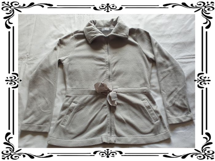 Veste taille 40. Veste en polaire grise zippée. Une poche de chaque côté. Lien de serrage à la taille. Tissu extensible sur 4 cm en largeur. Largeur d’épaule à épaule : 37 cm Largeur sous les bras : 49 cm Largeur à la taille : 43 cm Largeur en bas : 57,5 cm Longueur totale : 67 cm Longueur des manches : 59,5 cm En très bon état. Etam. 3€. #vero38110vetementsfemme40
