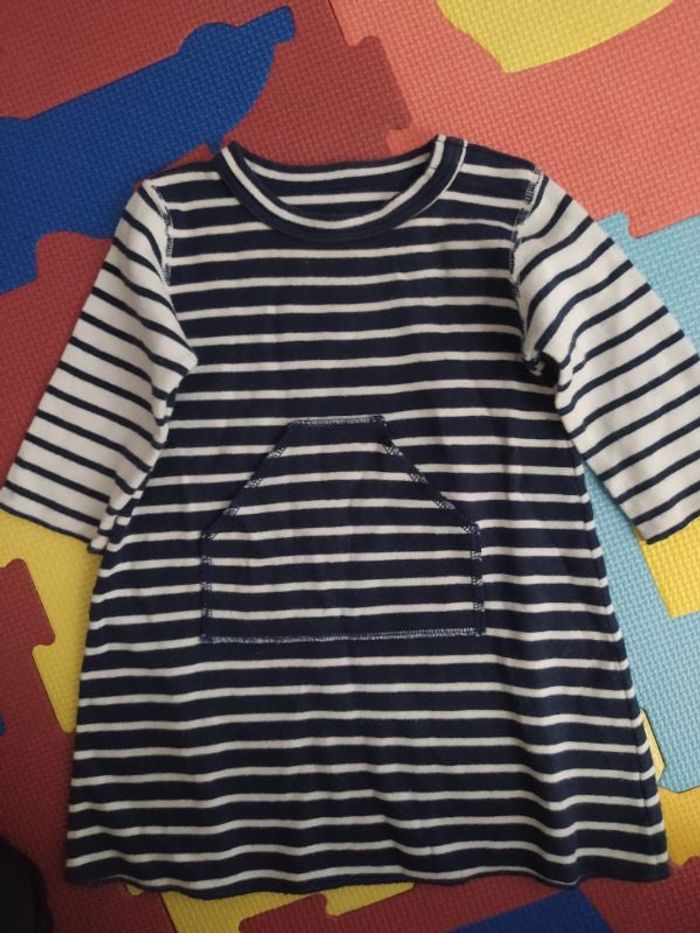 Robe petit bateau en parfait état. Bouton pression au col. Rayé bleu marine et blanc. N'hésitez pas à faire des lots en filtrant par taille si vous voulez 😉