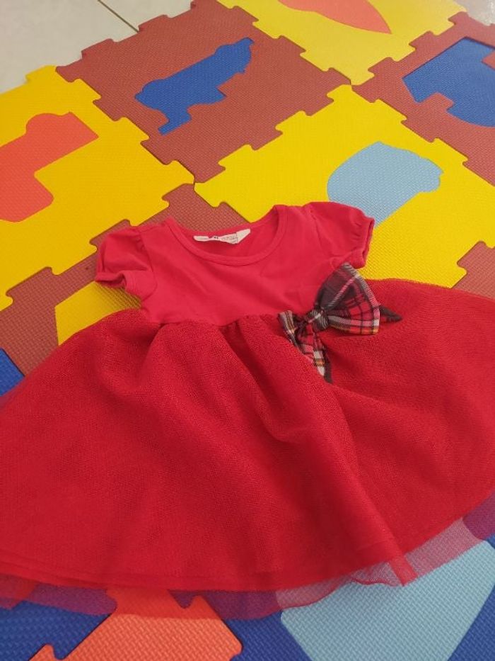 Jolie robe rouge portée à Noël et saint sylvestre. Tulle pailleté. N'hésitez pas à faire des lots en filtrant par taille si vous voulez 😉