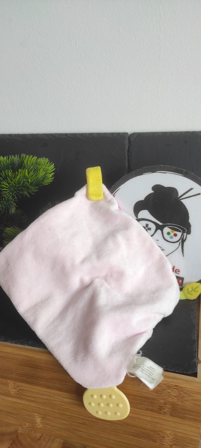 Doudou plat vache nicotoy rose poussin anneau de dentition gris blanc jaune Vert