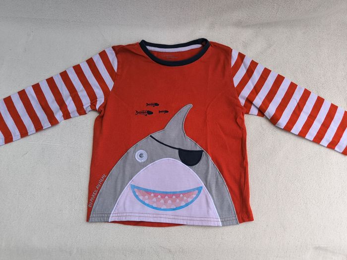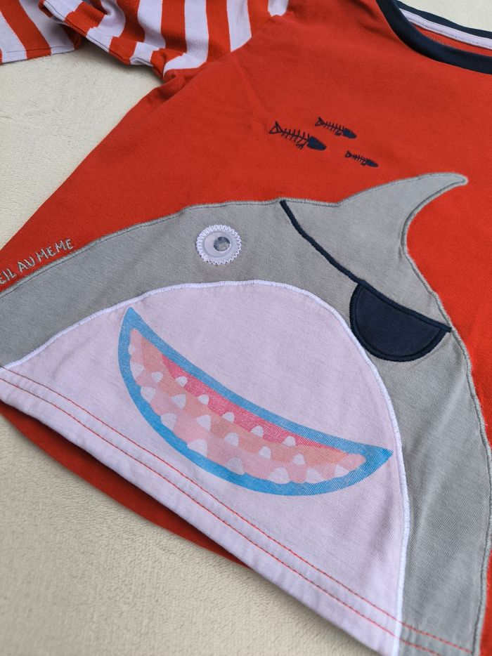 • Imprimés requin pirate avec œil mobile, rayures horizontales, broderies poissons