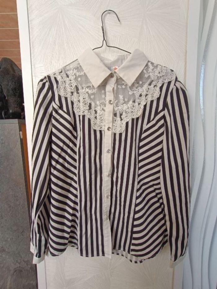 Chemise a rayures noir blanche Dentelle sur le devant Aucune défaut a a signalé N'hésitez pas pour plus d'informations et faites des lots svp ! 🌺🪻🌷🪴 Réduction si vous faites des lots #kiabi #kiabifemme #kiabifemme42 #kiabi42femme #femme4244