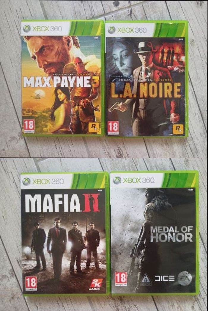 Jeux XBOX 360 MAX PAYNE 3 L.A.NOIRE MAFIA II MEDAL OF HONOR N'hésitez pas pour plus d'informations 😊