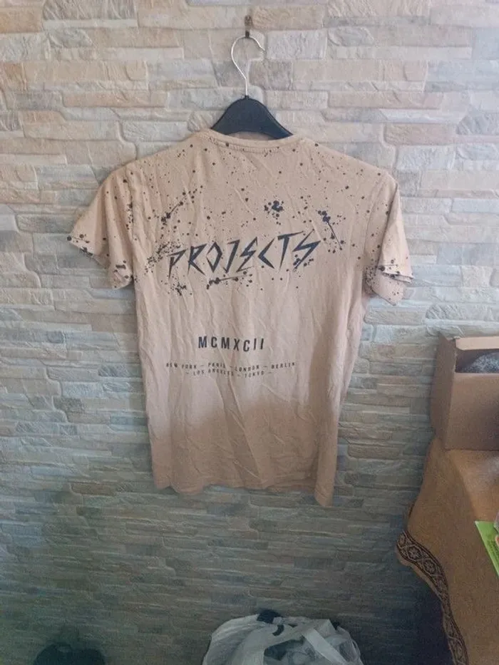 T-shirt beige FSBN XS. Épaules 40 cm. Aisselles 48 cm. Longueur 66 cm. 100% coton. TBE