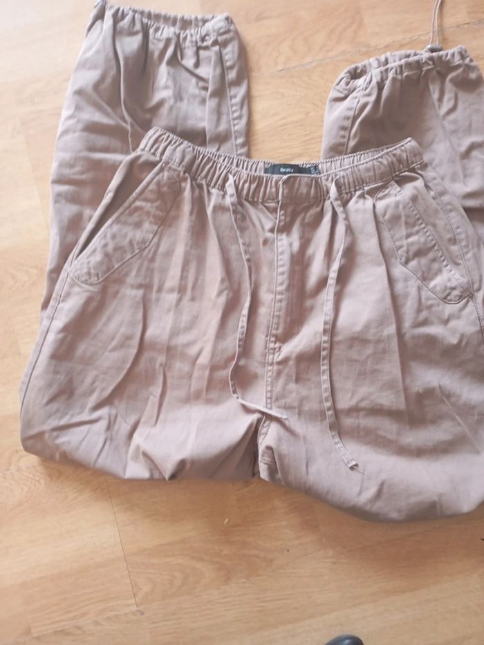 Taille s beige foncé Jambes bouffante lien a la taille et bas du pantalon