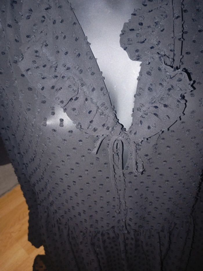 Petit points en relief Lien a la poitrine Froufrou poitrine Manches longues Robe courte dessus genou ou tunique