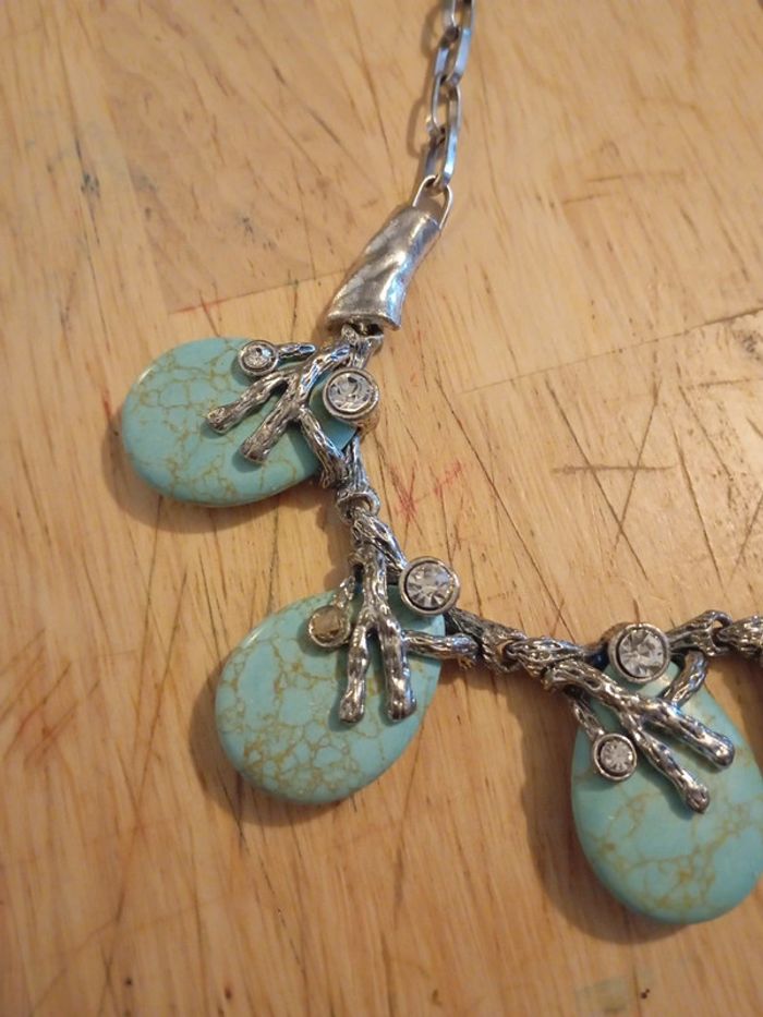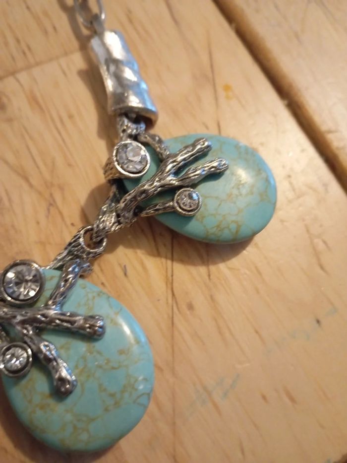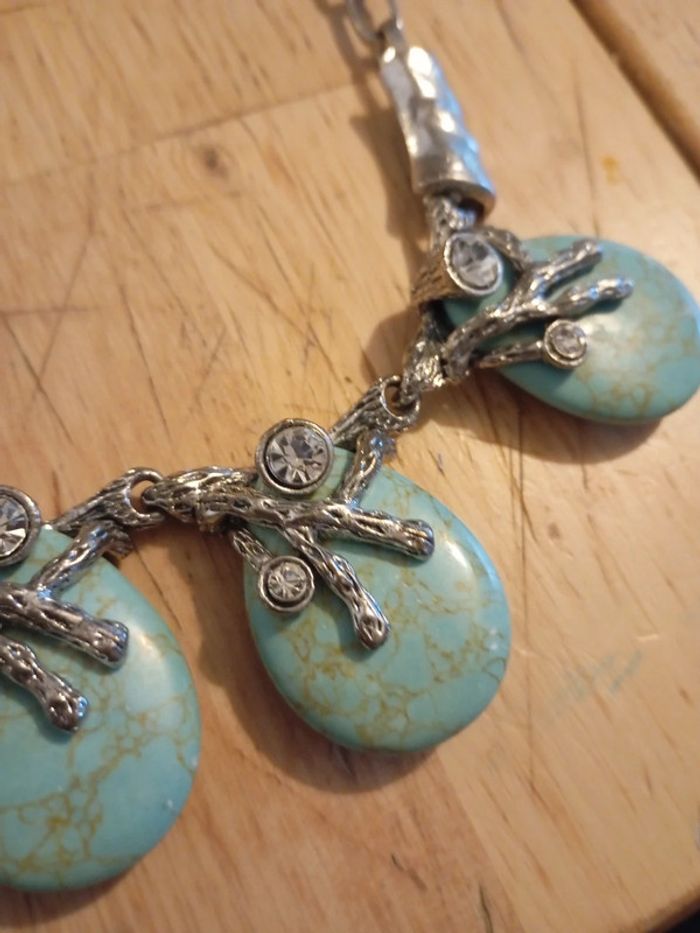 Pierre turquoise tibétaine strass Gros collier en tbe Grosse maille chaque pierre mesure 3 cm de haut sur 2 largeur