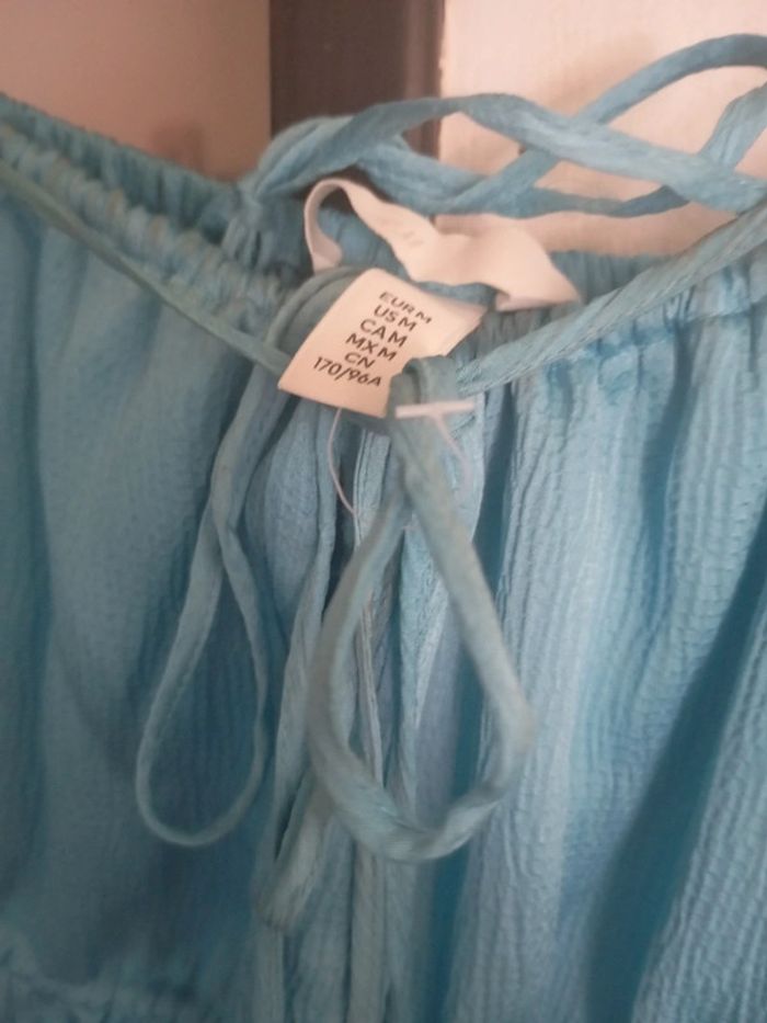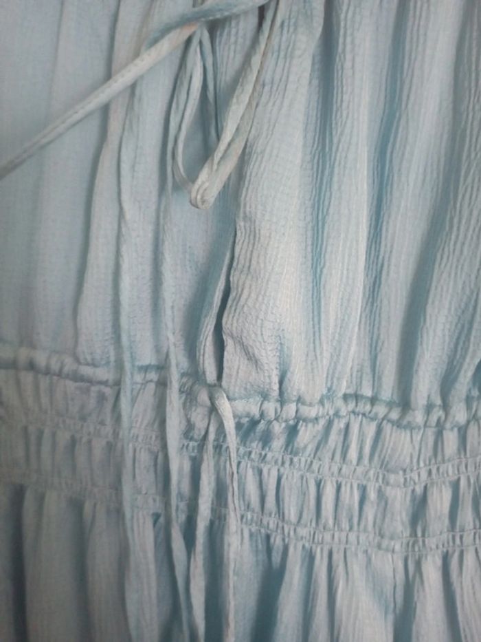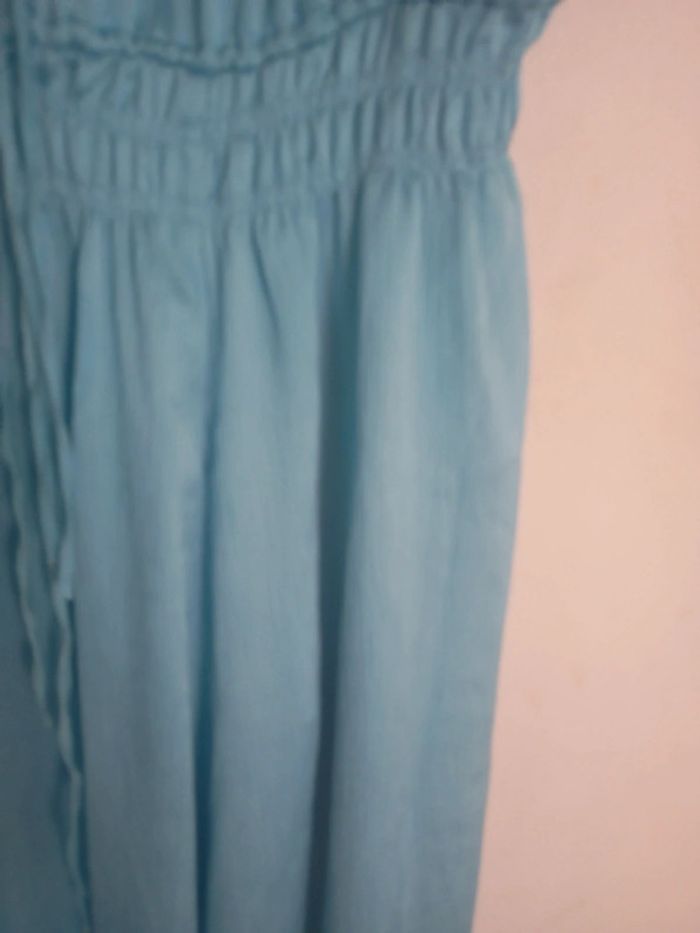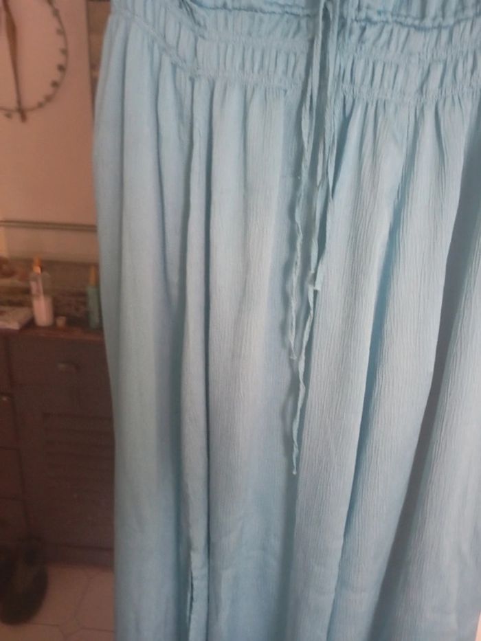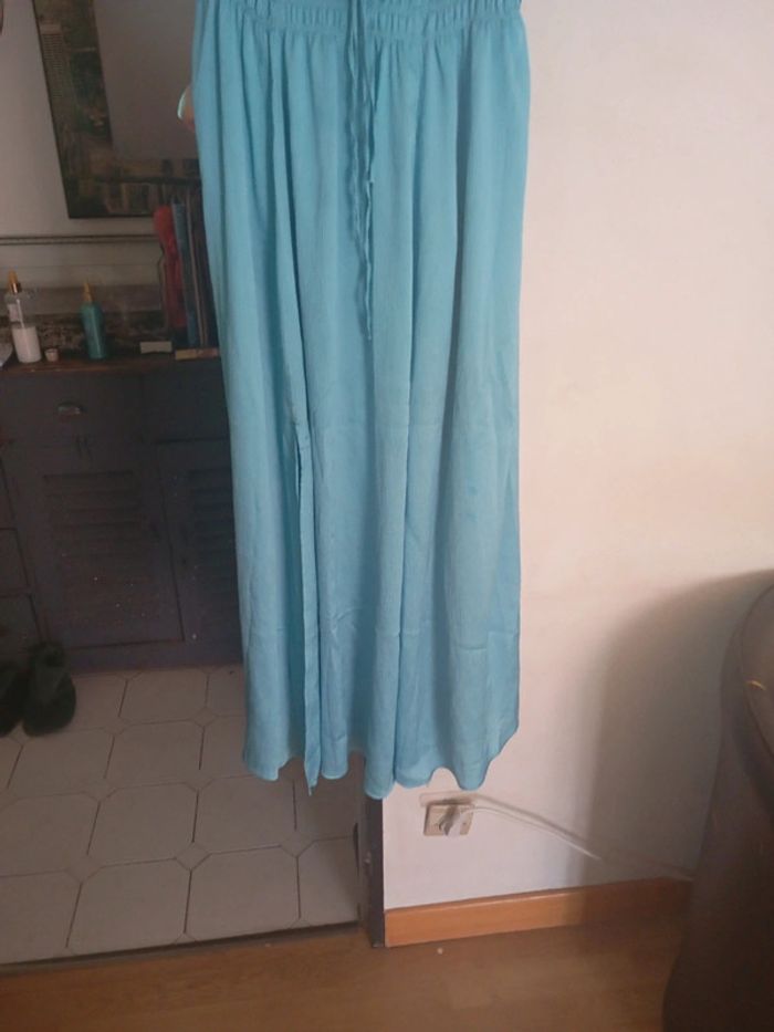 Bleu ciel longue Fendu devant et ouverte poitrine Lien a la taille