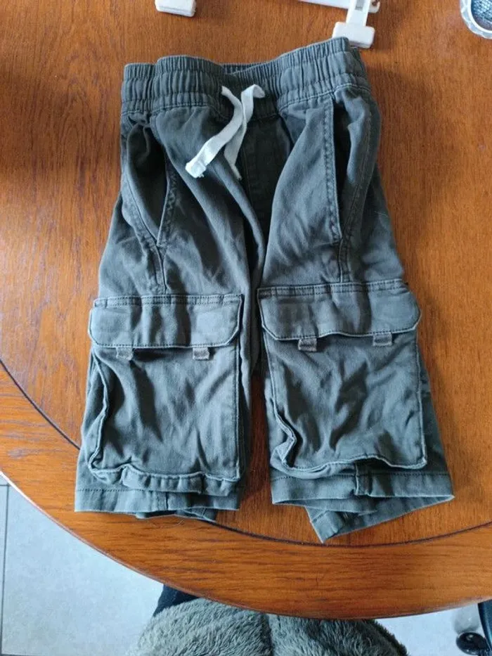 Bermuda cargo kaki La Halle 34. Ceinture élastique 30 cm, longueur 48 cm. 98% coton, 2% élasthanne. TBE