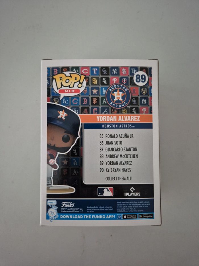 Figurine FUNKO POP Houston Astros 89, Yordan Alvarez, neuf jamais sortie de sa boîte d'origine, voir état de la boite sur les photos Envoi bien protégé en 24h maximum, sauf mercredi et dimanche aucun envoi possible car relai de dépôt fermé.