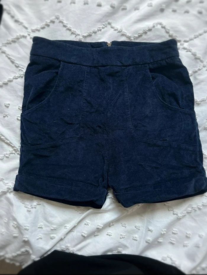 Short en velour bleu taille 34.