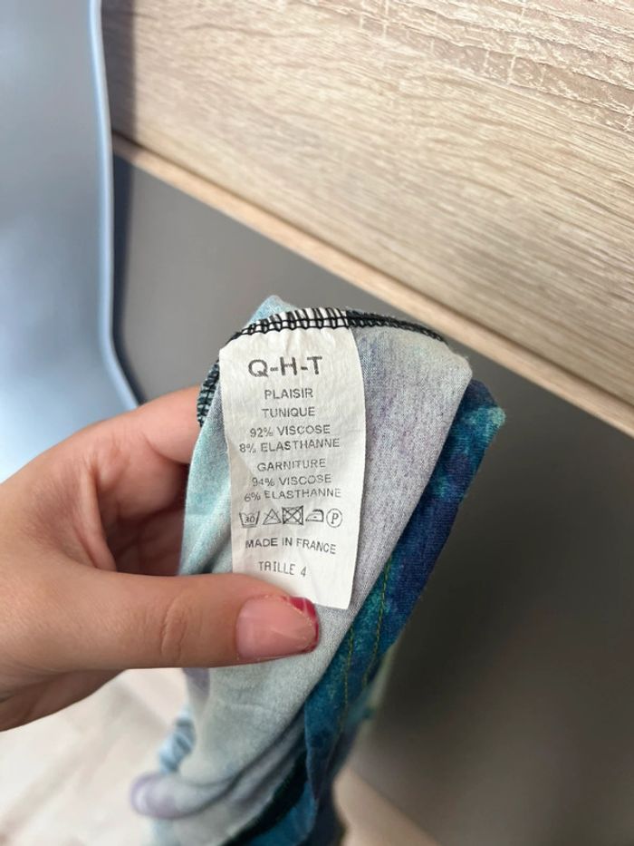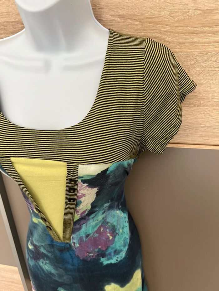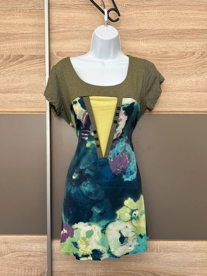 Robe verte avec plusieurs motifs Taille quatre