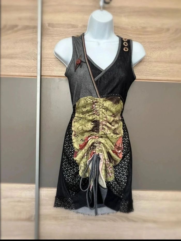 Vintage Chic : Robe Unique en Denim et Dentelle - photo numéro 1