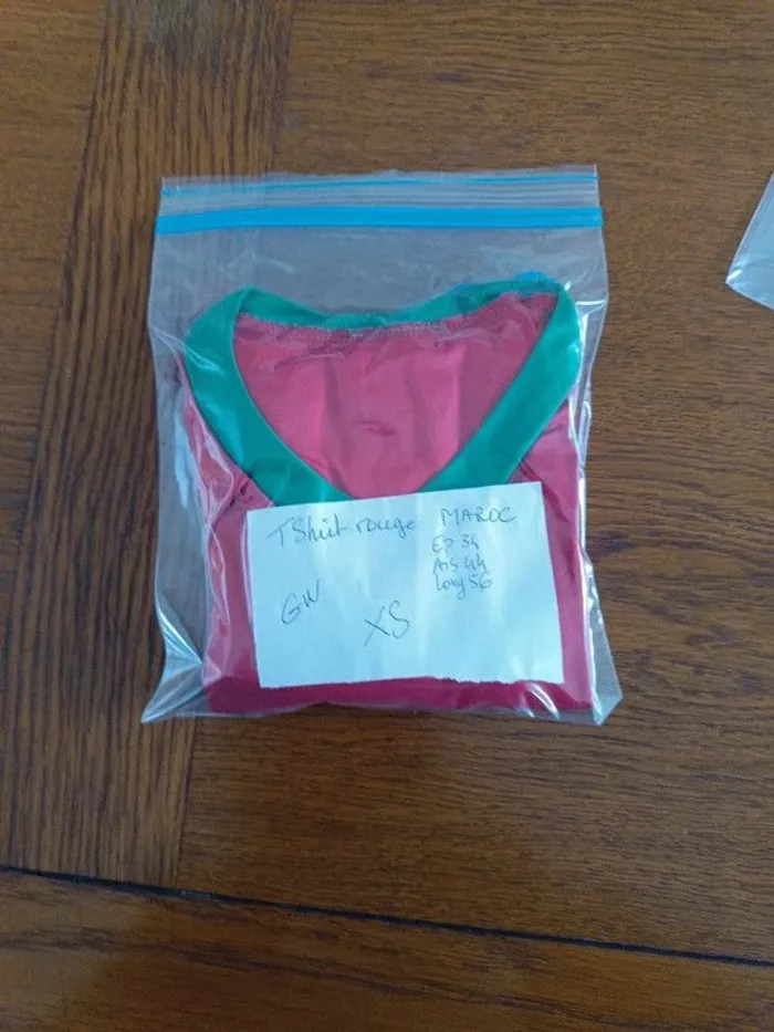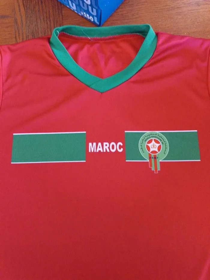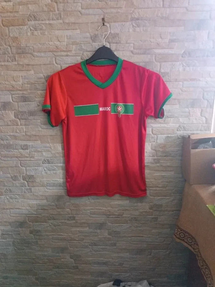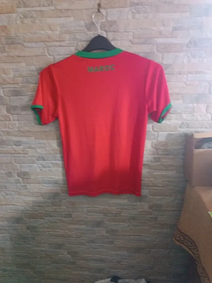 T-shirt de sport rouge Maroc XS. Épaules 34 cm. Aisselles 44 cm. Longueur 56 cm. 100% polyester. TBE