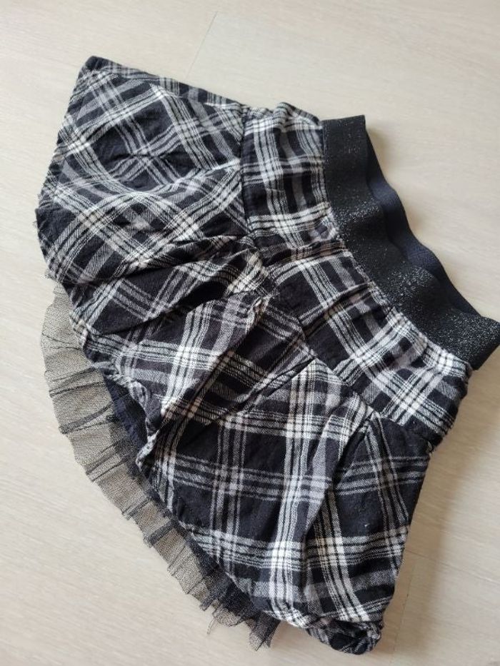 Jupe écossaise noir et blanc Gémo Porté #usagiichan4ans
