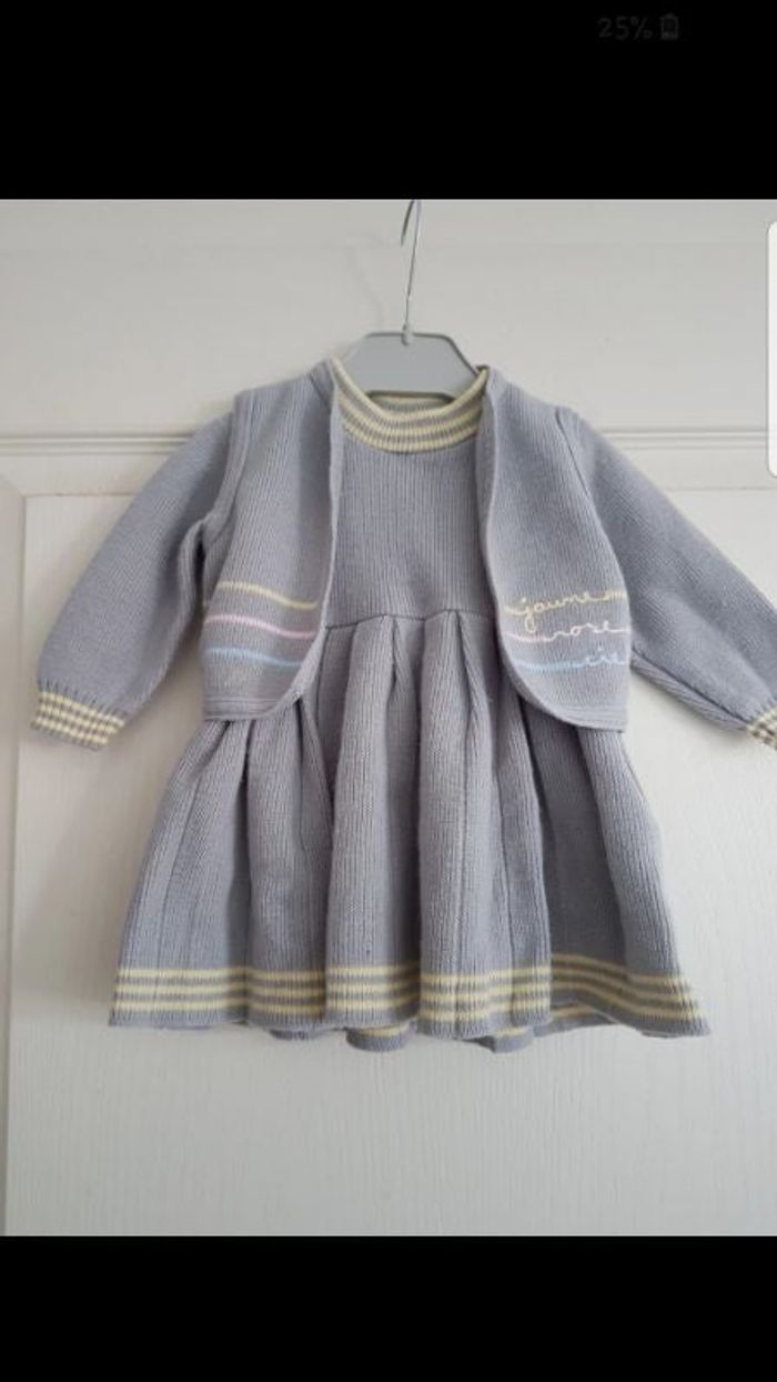 Robe avec gilet sans manche intégrée. (Non attaché donc se détache) Matière douce et épaisse. Taille 6mois. Coloris gris, rayure: jaune, rose et bleu. Marque crylor mais effacé. Fabrication française. Parfois porté. Pour mes autres habits et accesoires bébés. c'est ici ➡️ #UsagiiChanBaby 👶 #UsagiiChan6mois
