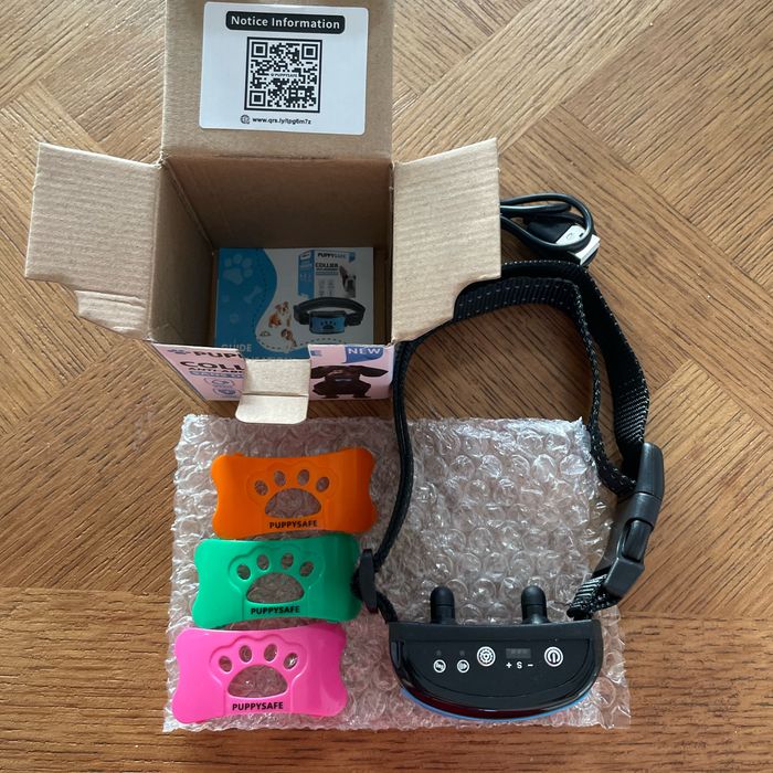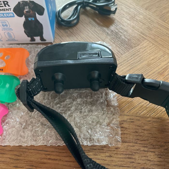 Bonjour, Je mets en vente ce collier anti aboiement pour chien neuf jamais utilisé. Il est dans son emballage d’origine avec son cordon d’alimentation, sa notice d’utilisation et 4 choix de couleur pour le collier.