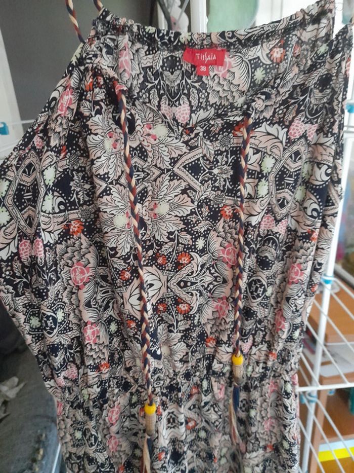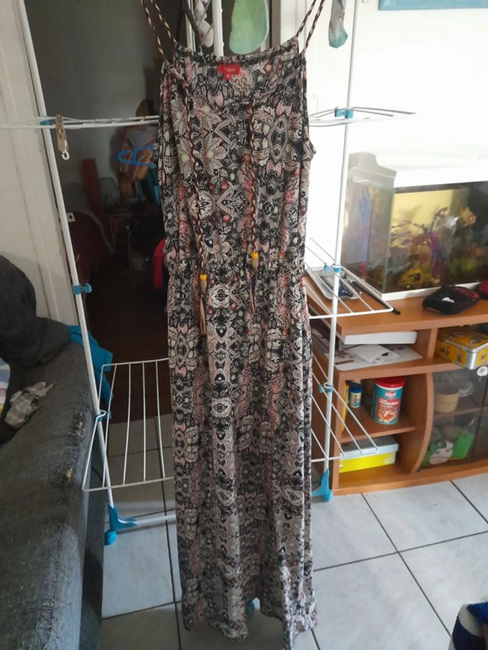 Robe longue fleurie élastique à la taille bretelle ficelle réglable en tirant dessus tissaia taille 38 #Sally0851femmes38