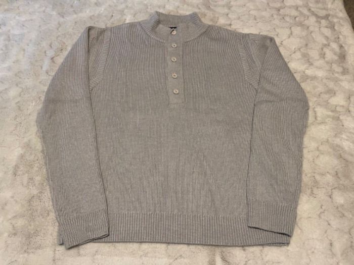 Très joli pull gris avec boutons sur le devant. 50% laine 50% acrylique