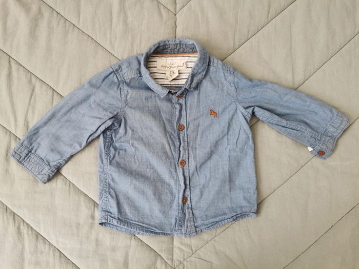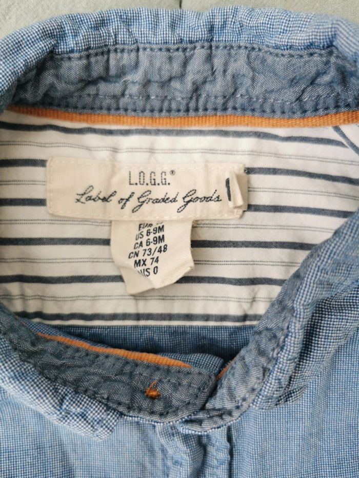 Chemise fine bleue en bon état. Taille 6-9 mois 74 cm. Bénéficiez de 10 % dès 5 articles. #amyfrenchie_9mois