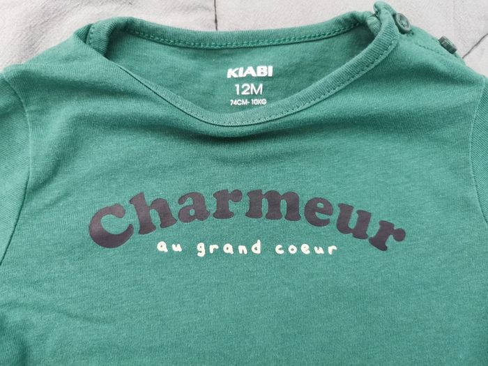 Tee shirt manche longue charmeur au grand cœur en très bon état. Taille 12 mois 74 cm. Bénéficiez de 10 % dès 5 articles. #amyfrenchie_12mois
