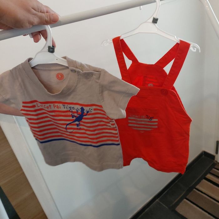 Ensemble T-shirt et salopette rayée orange L'effet Pei