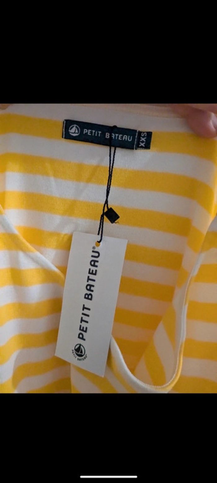 T-shirt manches longues jaunes et blanc XXS - photo numéro 4