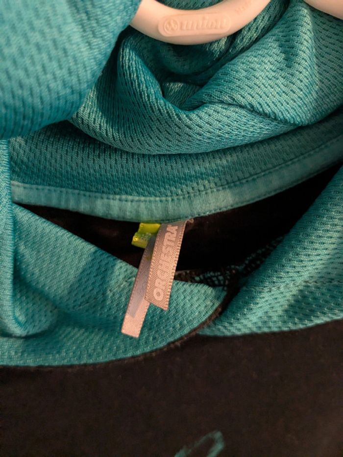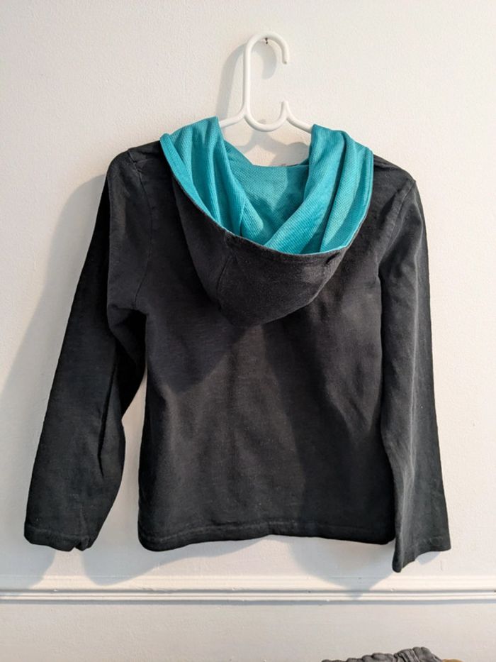 T-shirt manches longues épais capuche Chouette Attention , la chouette et la capuche sont plutôt vertes que bleues 8 ans