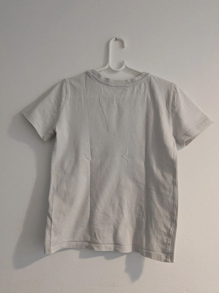 De la marque H&M ce t-shirt blanc en 8 ans dispose d'un motif monstre , réversible en sequins , bleu ou noir Bon état mais présence une tâche susceptible de partir