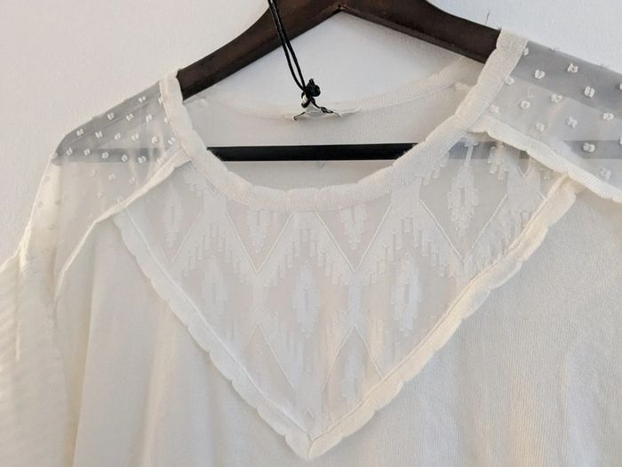 Haut blanc cassé type chemisier dentelle plumetis Marque Kaporal Taille L Prix d'origine 59€