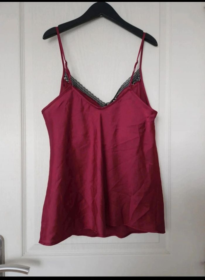 Jolie haut à bretelle rose satiné avec dentelle et brassière intégrée femme etam taille M/38 - photo numéro 6