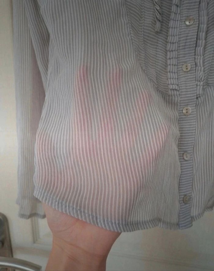 Chemise en transparence à rayure blanc et gris femme etam taille S/36 - photo numéro 1
