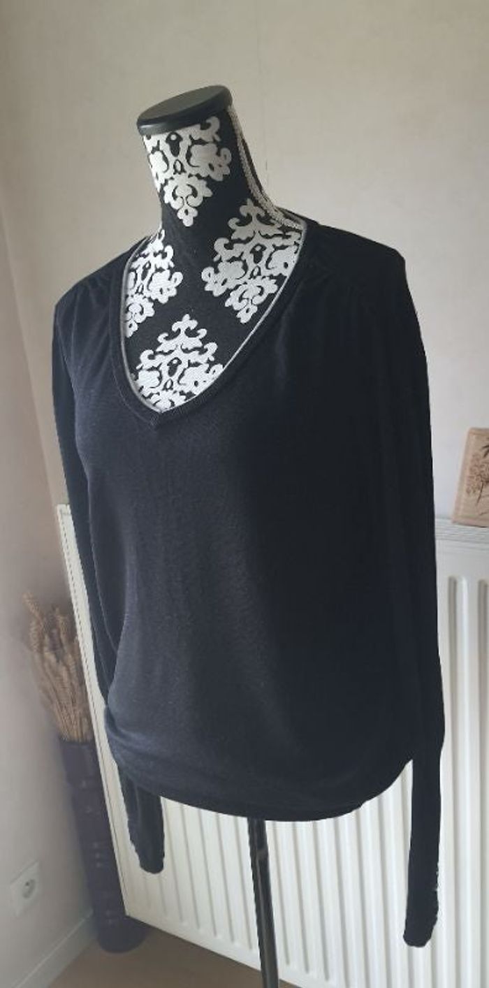 Pull col V noir et gris Naf Naf, en très bon état mais légèrement decousu (voir photo), matière agréable avec du viscose, taille: L mais peut convenir à une taille XL N'hésitez pas à me poser des questions et/ou à me demander d'autres photos #femmegrande #tallgirl #longtallsally #newlooktall  #topshoptall #nexttall #asostall #zalandotall #zara #mango #sheintall