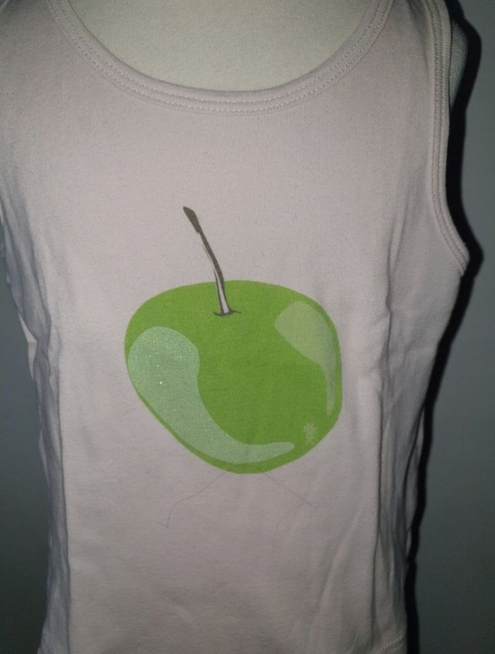 Débardeur rose clair motif pomme verte. Porté mais en bon état. Taille 4 ans ( plutôt 3/4 ans) Okaidi #3anssevy57 #4anssevy57