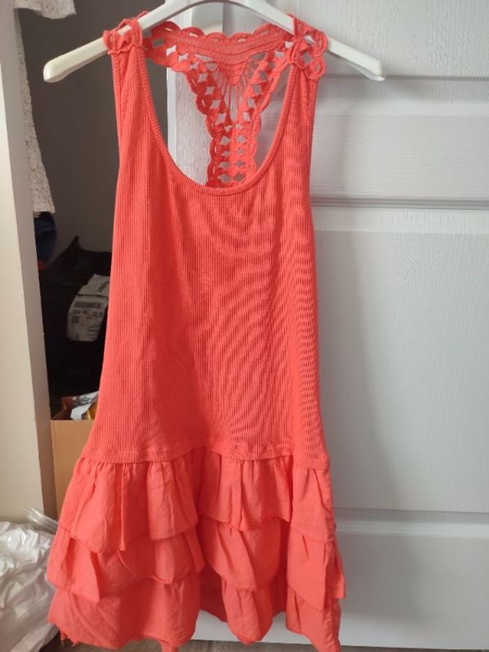 Robe corail Made in Italy Coton Très qualitative Partie supérieure débardeur côtelé très extensible Elle existait en S/M et L/XL Taille xs, s et m