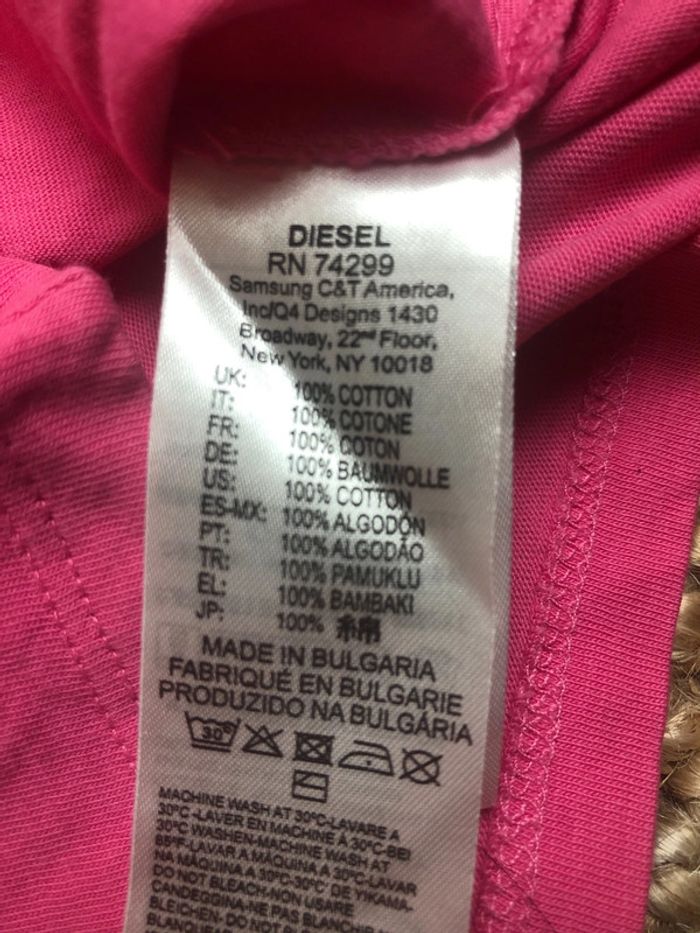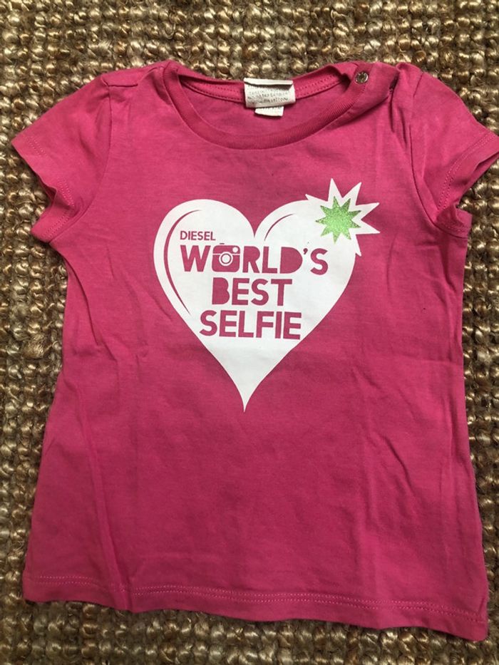 Article: ✨teeshirt ✨ Couleur:🎨rose🎨 Taille:📏12mois📏 Marque:🌈diesel État :🌞tres bon etat🌞 N hésitez pas à consulter mon dressing, des remises sont activées des deux articles.🙂 Envoie rapide et soigné 🌿 Maison non fumeur ✨ 🦄Abonnez-vous, des nouveautés sont régulièrement ajoutées 🦄 #payrat15emelinehabits12mois