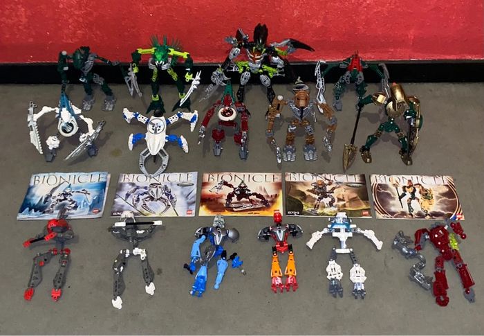 Lot comprenant 15 Lego Bionicle : - Lego 8747 : Complet, avec notice - Lego 8619 : Complet, avec notice - Lego 8762 : Complet, avec notice, il manque 1 pièce - Lego 8739 : Complet, avec notice - Lego 8614 : Complet, avec notice - Lego 8952 : Complet, sans notice - Lego 8920 : Complet, sans notice, il manque 3 pièces - Lego 8740 : Complet, sans notice - Lego 8616 : Complet, sans notice, il manque 1 pièce - Lego 8592 : Complet, sans notice, il manque 4 pièces - Lego 8570 : Complet, sans notice, il manque 7 pièces - Lego 8588 : Complet, sans notice, il manque 6 pièces - Lego 8572 : Complet, sans notice, il manque 9 pièces - Lego 8616 : Complet, sans notice, il manque 3 pièces - Lego 8601 : Complet, sans notice, il manque 5 pièces